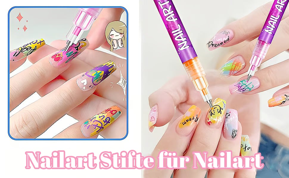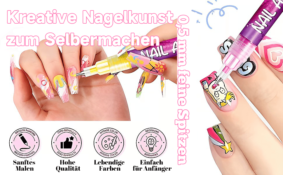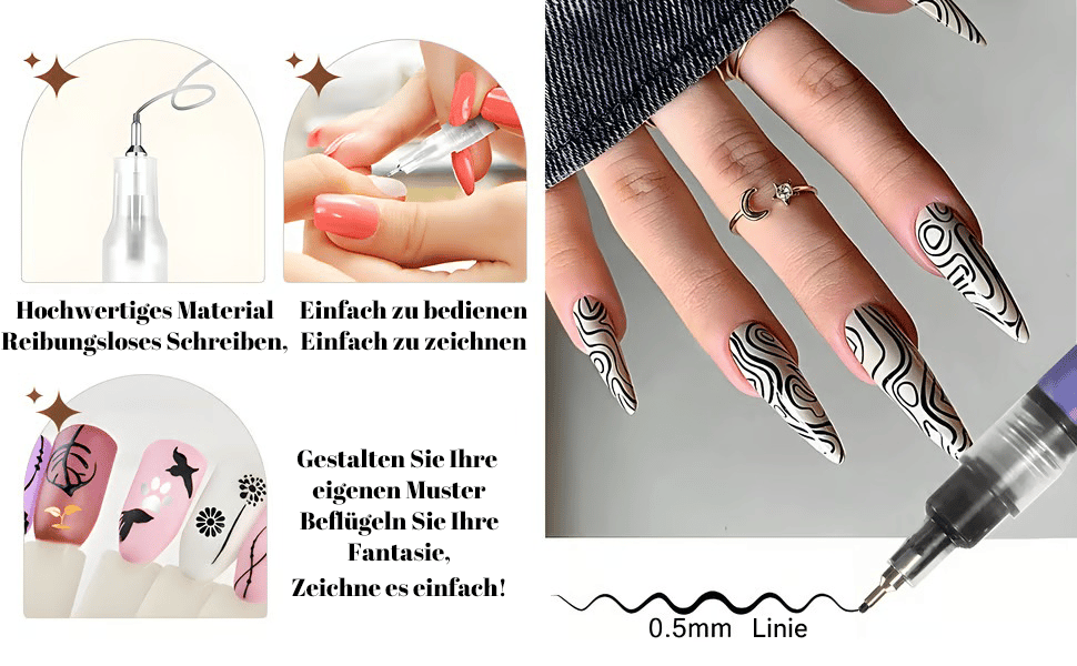 DIY-NAGELMUSTER FÜR JEDEN ANLASS: Mit diesem Nagellackstift-Set kreieren Sie im Handumdrehen detailreiche Muster wie Blumen, Tiere oder abstrakte Designs – ganz bequem von zu Hause aus. Verleihen Sie Ihren Nägeln eine persönliche Note und erzielen Sie professionell aussehende Nagelkunst, ohne ins Nagelstudio gehen zu müssen.